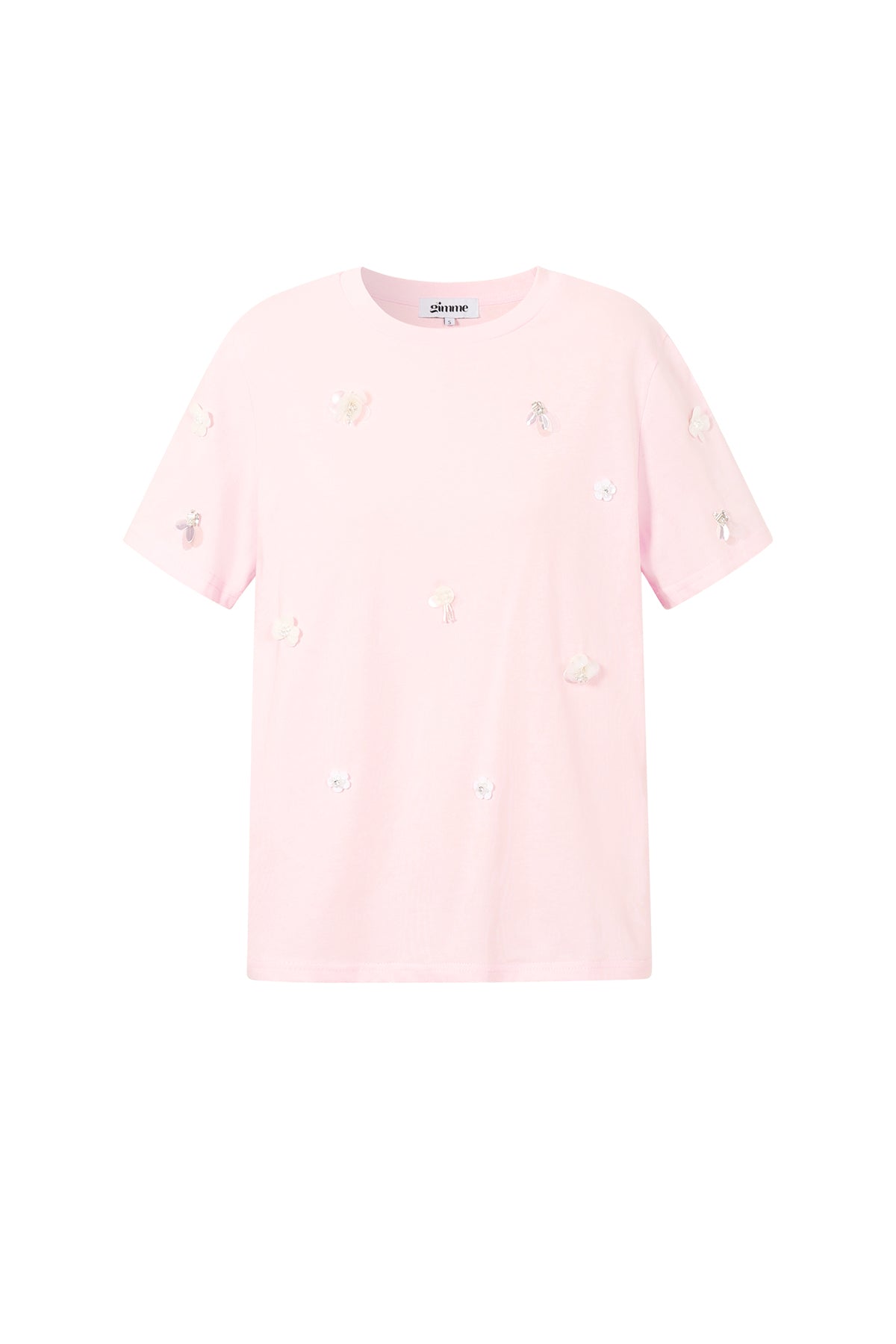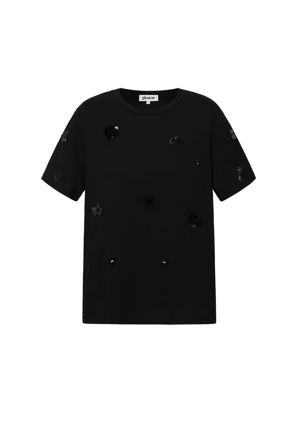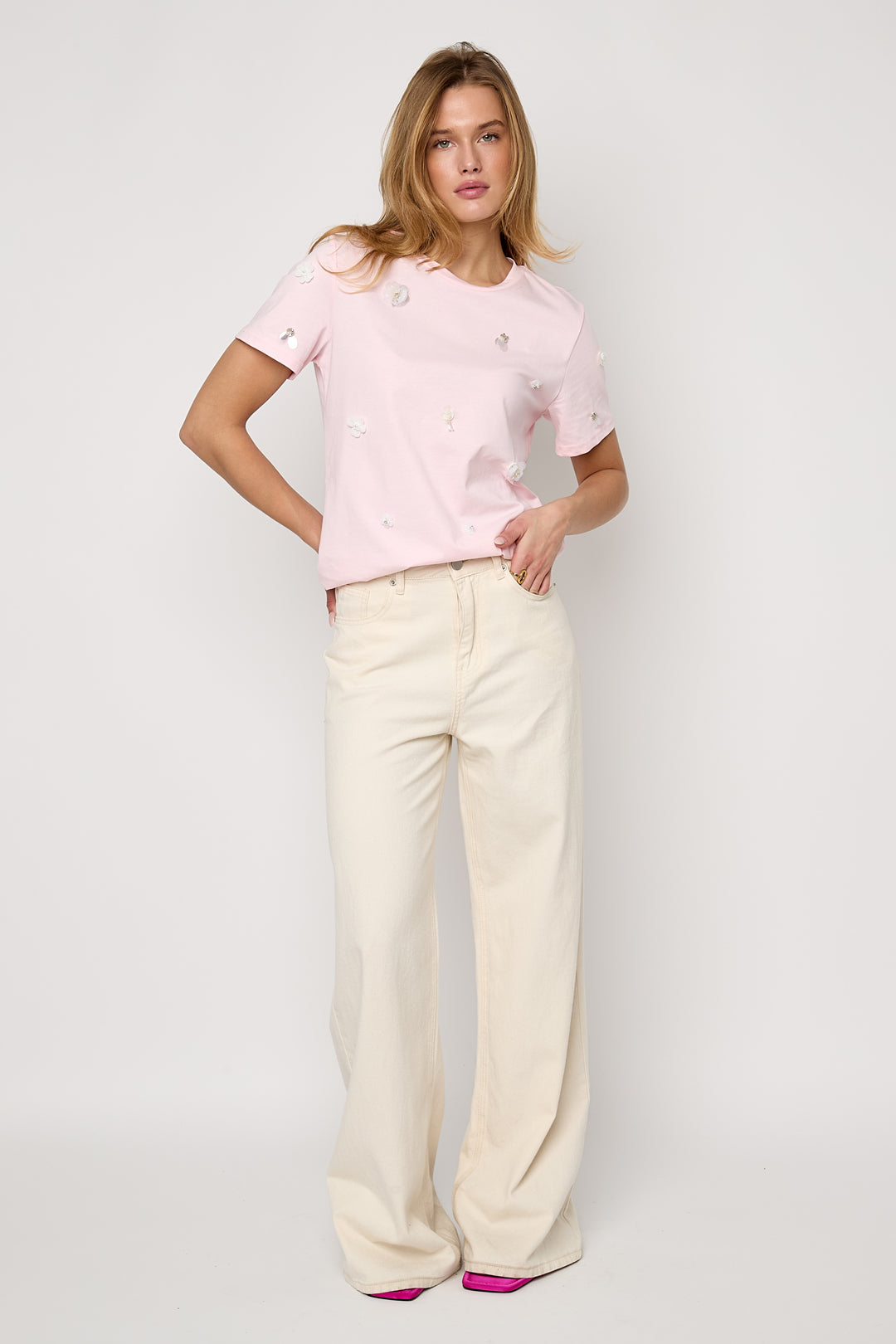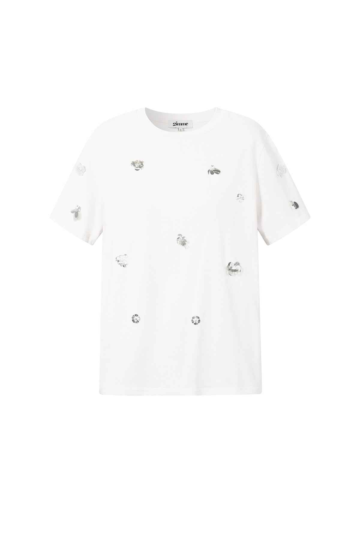 Minimal, maar allesbehalve basic. Dit korte mouwen t-shirt met pailletten heeft een tijdloze uitstraling met een trendy touch. Ideaal voor een elegante summer wardrobe.