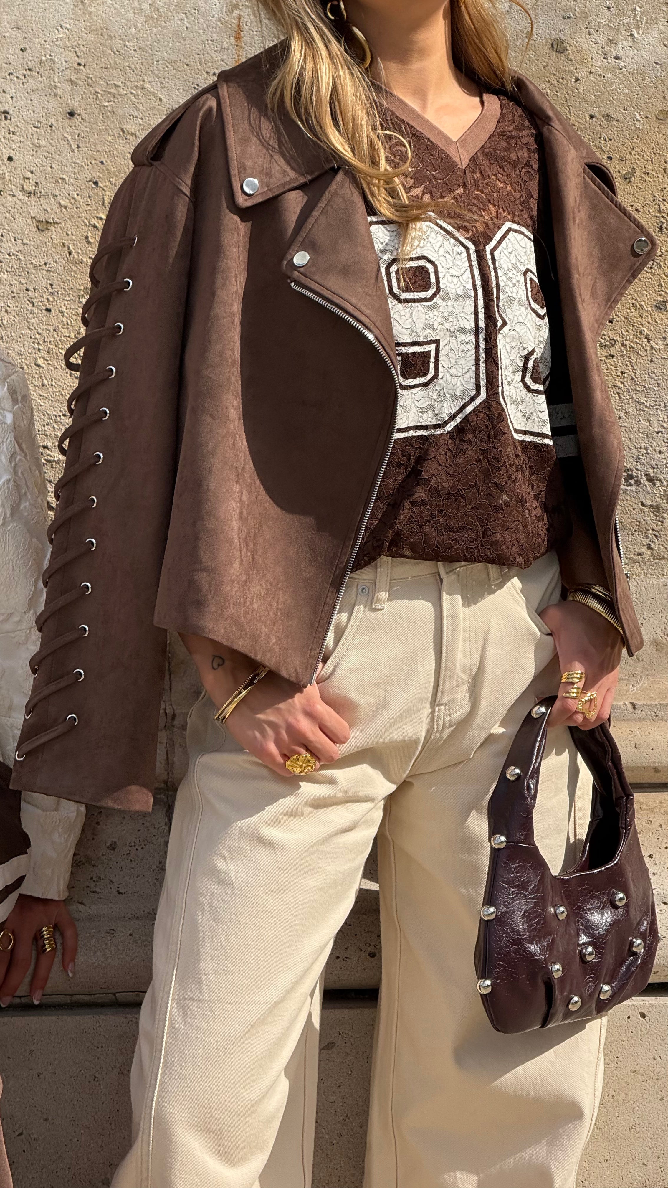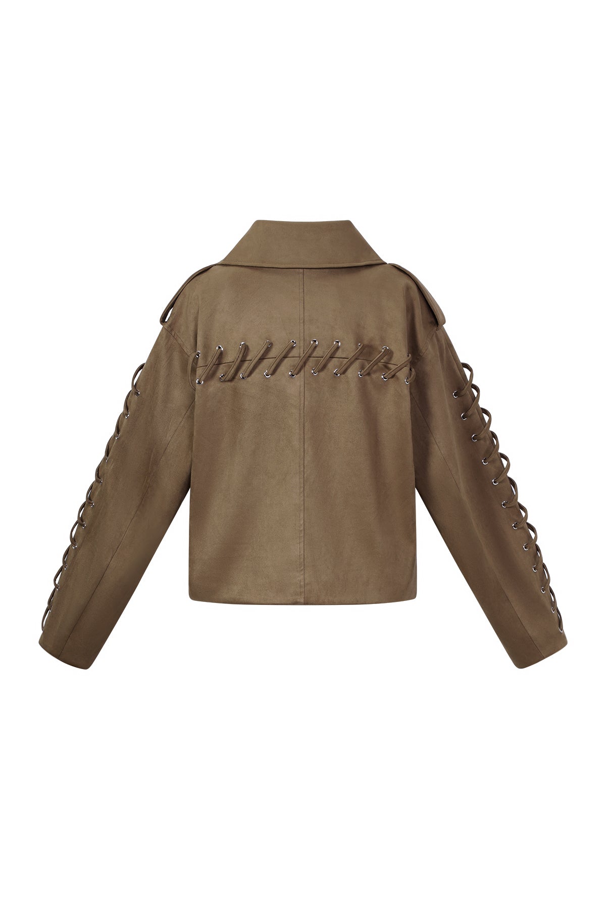 - Size M measures 55.5 cm across the shoulders, 116 cm across the chest, 59.8 cm across the sleeve length, and 59 cm across the length;